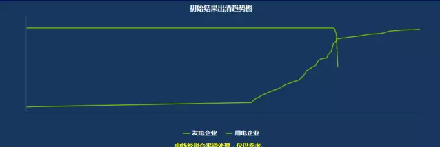 從出清趨勢圖上可以看出,競價開始初期,大多數(shù)需方都保持趨零報價,供方報價也在-450厘最低線上徘徊,和需方形成了兩條平行直線,直到競價末期,供方開始拉升,需方也漸趨下探,最終形出了-48.15厘/千瓦時的出清價差。