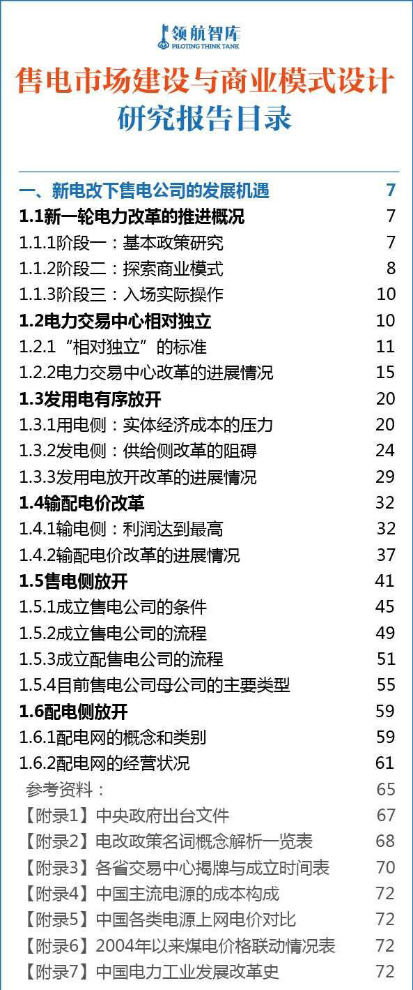 售電市場建設(shè)與商業(yè)模式研究報告2017》目錄如下: