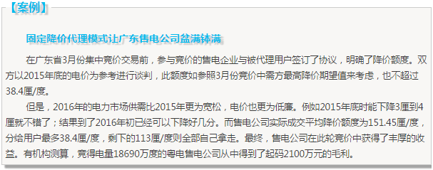 從目前來看,由于電力市場嚴(yán)重供大于求,普遍認(rèn)為電價會繼續(xù)下跌,因此業(yè)界目前并不看好固定降價的代理模式,而靈活度更高的“分成”以及“兜底+分成”模式逐漸成為主流。