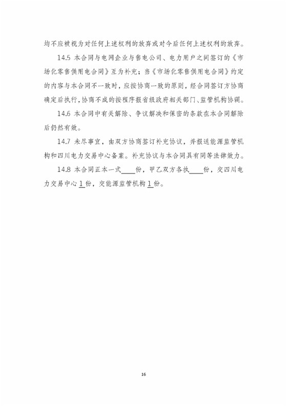 四川電力交易中心發(fā)布2018年購(gòu)售電交易合同(試行文本)
