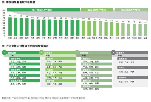 以下是中國智能城市總排名及在四大核心領域領先的超級智能城市: