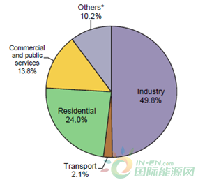 2016年,4個最大的非經(jīng)合組織電力用戶是中國、印度、俄羅斯聯(lián)邦和巴西,它們共同占據(jù)了非經(jīng)合組織電力消費(fèi)量(或全球36.1%消費(fèi))的66.3%。在這些國家中,中國的占比最高,占非經(jīng)合組織國家電力總消費(fèi)量的45.6%。經(jīng)合組織以外的電力使用主要由工業(yè)需求主導(dǎo),工業(yè)部門電力消費(fèi)占電力總消費(fèi)量的一半。