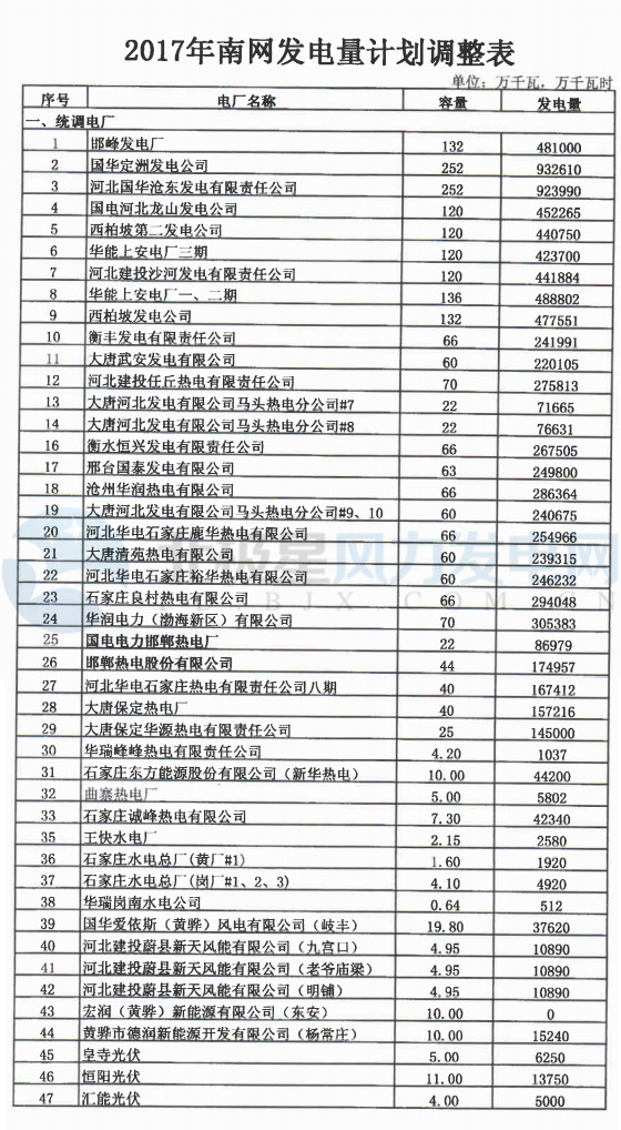 關(guān)于調(diào)整河北南部電網(wǎng)2017年發(fā)電量計(jì)劃的通知