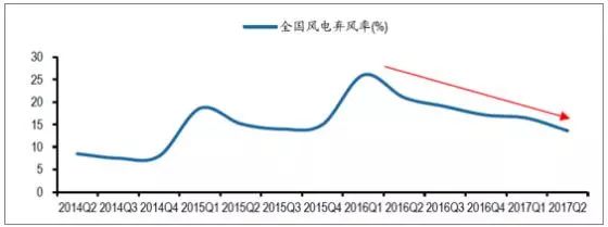 2017年第2季度棄風(fēng)率為11.1%,在第1季度16.4%的水平上也出現(xiàn)了明顯的下降。