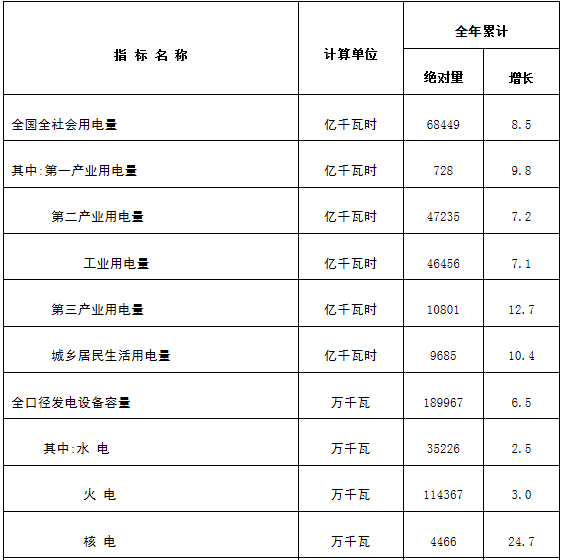 全國電力工業(yè)統(tǒng)計(jì)數(shù)據(jù)一覽表