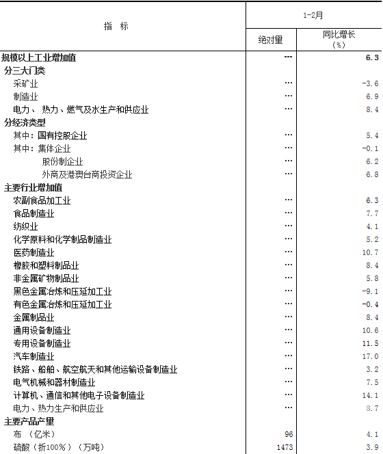 2017年1-2月份規(guī)模以上工業(yè)生產(chǎn)主要數(shù)據(jù)