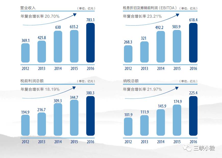 近五年來,三峽集團生產經營狀況穩(wěn)健,盈利能力持續(xù)提升,連續(xù)三年全面超額完成國資委穩(wěn)增長目標任務。2016年,三峽集團克服國內經濟下行、電力產能過剩、電價下調、財稅政策優(yōu)惠減少等諸多因素影響,生產經營各項指標再創(chuàng)歷史新高。截至2016年底,三峽集團資產規(guī)模6600億元,凈資產3503億元,與當初國家注入的三峽基金相比,三峽集團凈資產已增長3倍有余,持續(xù)實現了國有資產保值增值;資產負債率46.9%,處于中央企業(yè)較好水平;全員勞動生產率、人均利潤在中央企業(yè)名列前茅;稅息折扣及攤銷利潤、上交稅費等關鍵指標均創(chuàng)歷史同期最好水平;2016年全年利潤總額突破380億元,成功實現“一天為共和國貢獻一個億利潤”的目標。