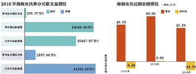據(jù)新京報記者了解,在未能成為海潤光伏戰(zhàn)略股東的情況下,孟廣寶控制下的海潤光伏和他作為個人大股東的華君控股及相關(guān)企業(yè)(簡稱華君系)迅速走近,并發(fā)生了眾多不合規(guī)的關(guān)聯(lián)交易及資金往來,海潤光伏的業(yè)績也在孟廣寶在任的2016年大幅下滑。