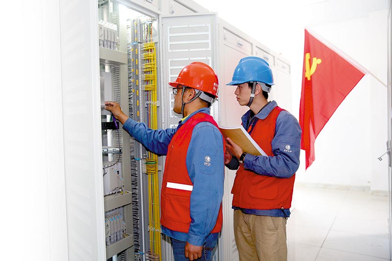 6月29日,黃化供電公司抽調(diào)技術(shù)人員幫助光伏企業(yè)做投運前的最后檢查 王國棟 攝