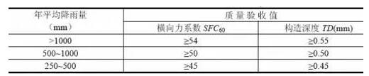 《瀝青路面設(shè)計規(guī)范》提到,高速公路、一級公路瀝青路面的抗滑性能,以橫向力系數(shù)測試車在 60km/h 車速下測得的橫向力系數(shù) ( SFC60 ) 和構(gòu)造深度 ( TC ) 為主要指標。