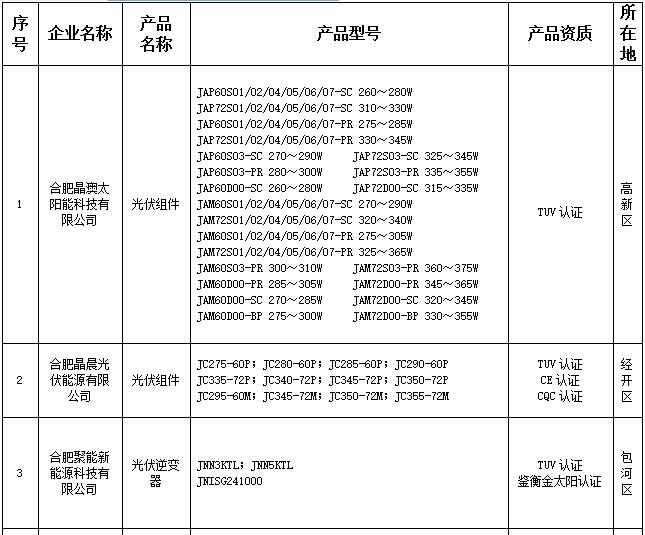 安徽合肥2017年光伏產品推廣目錄第二批名單敲定 晶澳、易事特等5家企業(yè)上榜