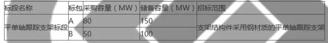 平單軸跟蹤支架標(biāo)段標(biāo)段總采購容量130MWp儲備250MW各標(biāo)段容量和組件類型如下:
