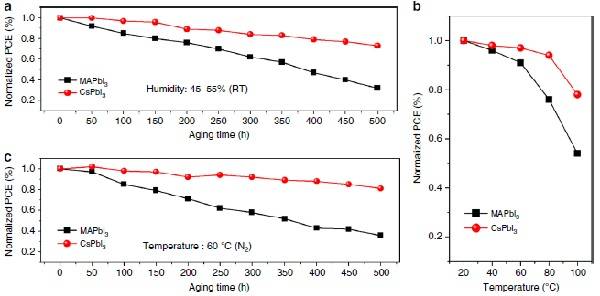 (b). 正交晶相和立方晶相的碘化銫鉛的老化圖;