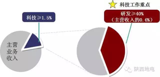 根據(jù)省國(guó)資委對(duì)集團(tuán)公司科技創(chuàng)新工作的總體要求:陜西省地方電力科技投入占整體業(yè)務(wù)收入的比重達(dá)到1.5%以上,研發(fā)投入占整體業(yè)務(wù)收入的比重達(dá)到0.6%以上。