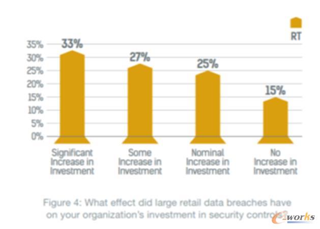 與醫(yī)療和金融服務(wù)等其他行業(yè)相比,接受調(diào)查的零售商并沒(méi)有通過(guò)在安全控制方面進(jìn)行投資的方式對(duì)全行業(yè)的安全違規(guī)行為做出回應(yīng),其中只有33%的企業(yè)大幅增加了投資。這情況很令人擔(dān)憂,原因是60%以上的受訪者正采集客戶數(shù)據(jù)進(jìn)行分析和個(gè)性化營(yíng)銷;缺少相關(guān)投資可能會(huì)讓零售商更容易遭受到威脅和攻擊。