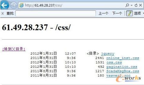 通過網(wǎng)絡(luò)搜索該公司SCACA信息,結(jié)果暴露SCADA系統(tǒng)的IP地址,通過點(diǎn)擊鏈接http://61.49.28.237/開啟了目錄瀏覽,遍歷目錄后得到CKFinder,之后通過getshell命令提權(quán)控制SCADA主機(jī),通過前端的WEB服務(wù)器和數(shù)據(jù)庫服務(wù)器作為跳板,通過VPN等方式對(duì)后端的中控系統(tǒng)進(jìn)行操作。