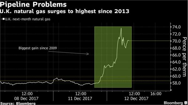 當天的英國天然氣價格上漲了46%至99便士/千卡,然后放緩至73便士/千卡。