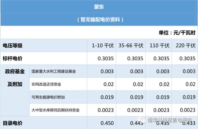 全國各省電價匯總之華北、華東、東北區(qū)域