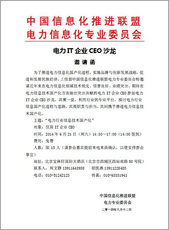 “電力IT企業(yè)CEO沙龍” 邀請函