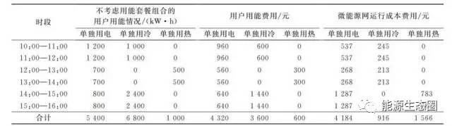 結(jié)論:在用戶(hù)用能量相同情況下,無(wú)套餐時(shí),用戶(hù)用能費(fèi)用合計(jì)8520元,微能源網(wǎng)運(yùn)行成本費(fèi)用合計(jì)3534元;在有套餐時(shí),用戶(hù)用能費(fèi)用合計(jì)為8221元,微能源網(wǎng)運(yùn)行成本費(fèi)用合計(jì)3151元。分別減少了299元和383元,提高了各方經(jīng)濟(jì)性。