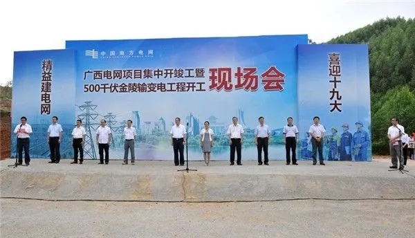 今天南寧市金陵鎮(zhèn)熱鬧非凡!自治區(qū)政府在這里召開2017年廣西電網(wǎng)項目集中開竣工暨500千伏金陵輸變電工程開工現(xiàn)場會,500千伏金陵輸變電工程隆重開工啦!