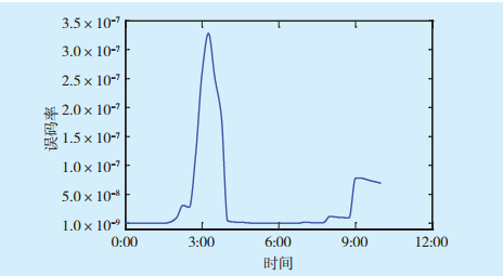 圖8 陰天誤碼率隨時間變化曲線Fig.8 Curve of atmospheric channel attenuation versus time in cloudy day