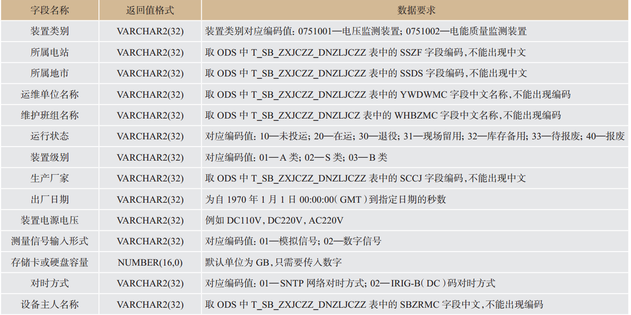 臺賬數(shù)據(jù)接口包括監(jiān)測終端的臺賬數(shù)據(jù)接口、測試儀器/檢定裝置的臺賬數(shù)據(jù)接口、監(jiān)測點的臺賬數(shù)據(jù)接口、電網(wǎng)設(shè)備的臺賬數(shù)據(jù)接口。