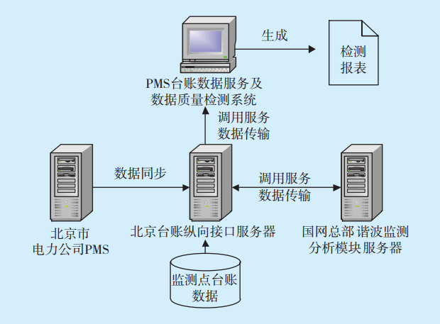 PMS2.0管理的設(shè)備類型多、數(shù)量大,依靠人工檢測的方式需要檢查的字段很多,數(shù)據(jù)量巨大,耗時較長,人力成本和時間成本都很高,而且在檢測的過程中很可能出現(xiàn)遺漏或者錯檢的情況。面對這樣的狀況,傳統(tǒng)依靠人工檢查方式已經(jīng)無法滿足數(shù)據(jù)質(zhì)量檢查要求[1]。因此,采用自動化、流程化手段高效、準(zhǔn)確地進(jìn)行數(shù)據(jù)檢測,對提升數(shù)據(jù)質(zhì)量是十分必要的[2]。針對國家電網(wǎng)公司諧波監(jiān)測平臺的縱向接口要求,設(shè)計實現(xiàn)PMS臺賬數(shù)據(jù)服務(wù)及數(shù)據(jù)質(zhì)量檢測系統(tǒng),用自動化的檢測代替人工檢查方式,可以提高供電企業(yè)數(shù)據(jù)質(zhì)量檢測工作的檢測速度,并有效提升后續(xù)工作效率。