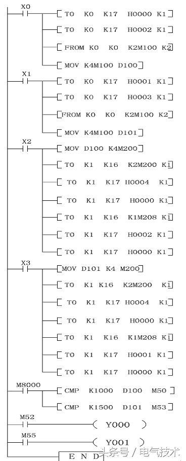 FX2N-2AD/FX2N-2DA模塊實際應(yīng)用控制程序如下圖3所示。