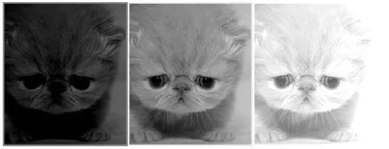 亮度:也稱為灰度,它是顏色的明暗變化,常用 0 %~ 100 % ( 由黑到白 ) 表示。以下三幅圖是不同亮度對(duì)比。