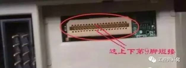 關(guān)掉PLC電源,打開PLC正上方的端蓋,如下圖,可以看到一個(gè)類似長方形端口,面對端口,從左邊開始數(shù)到端口的第九個(gè)針腳,上下同是第9針腳。然后用很細(xì)的鑷子(或電線)將上下兩個(gè)第9腳短接。