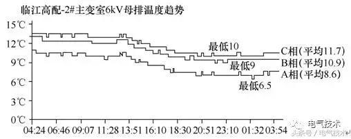 這些特點(diǎn)決定了理想的大數(shù)據(jù)分析系統(tǒng)的設(shè)計(jì)和其他計(jì)算系統(tǒng)的設(shè)計(jì)有很大不同,可以避免資源都浪費(fèi)在通信、等待、協(xié)調(diào)等非有效的計(jì)算上。大數(shù)據(jù)分析技術(shù)在變配電站智能監(jiān)控系統(tǒng)中的應(yīng)用,將有助于“智慧變配電站”的實(shí)現(xiàn),如圖6所示,利用大數(shù)據(jù)技術(shù)分析而出變壓器母排的三相溫度變化趨勢,在時間上,溫度變化趨勢與該原水泵站運(yùn)行的工況基本吻合。