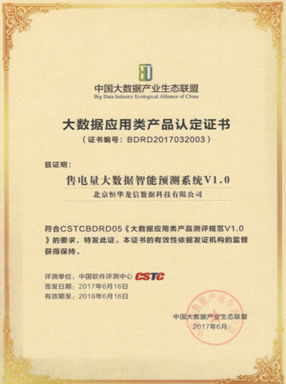 “售電量大數(shù)據(jù)智能預(yù)測(cè)系統(tǒng)-小智一號(hào)”作為國(guó)內(nèi)電力行業(yè)第一款大數(shù)據(jù)售電量預(yù)測(cè)產(chǎn)品。對(duì)售電量的影響因素進(jìn)行全面、精確的分析,選取行業(yè)、用戶類型、季節(jié)、溫濕度、節(jié)假日、市場(chǎng)變化、企業(yè)的生產(chǎn)狀況等指標(biāo),構(gòu)建用電量因素影響模型,形成了包含30多種模型算法的售電量預(yù)測(cè)模型庫(kù)。產(chǎn)品基于多種用電因素影響率的量化標(biāo)準(zhǔn),自動(dòng)計(jì)算不同環(huán)境下對(duì)售電量的影響指數(shù),結(jié)合目前的機(jī)器學(xué)習(xí)算法和深度學(xué)習(xí)算法使模型不斷的自我優(yōu)化和完善,實(shí)現(xiàn)售電量的精準(zhǔn)預(yù)測(cè),為售電公司在電力交易中進(jìn)行售電量申報(bào)提供重要依據(jù)。該產(chǎn)品于2017年6月份獲得“中國(guó)大數(shù)據(jù)產(chǎn)業(yè)生態(tài)聯(lián)盟”頒發(fā)的“大數(shù)據(jù)應(yīng)用產(chǎn)品認(rèn)證”證書。