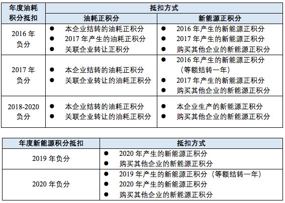 油耗積分:可以通過結轉、關聯(lián)企業(yè)(如江淮大眾)轉讓、自有新能源汽車積分或購買其他企業(yè)的新能源汽車積分抵扣等方式滿足要求。新能源汽車正積分可以抵扣同等數(shù)量的平均燃料消耗量負積分。上述抵償方式,可以組合使用。