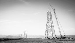 正在用起重機(jī)吊裝鐵塔。冉涌 攝